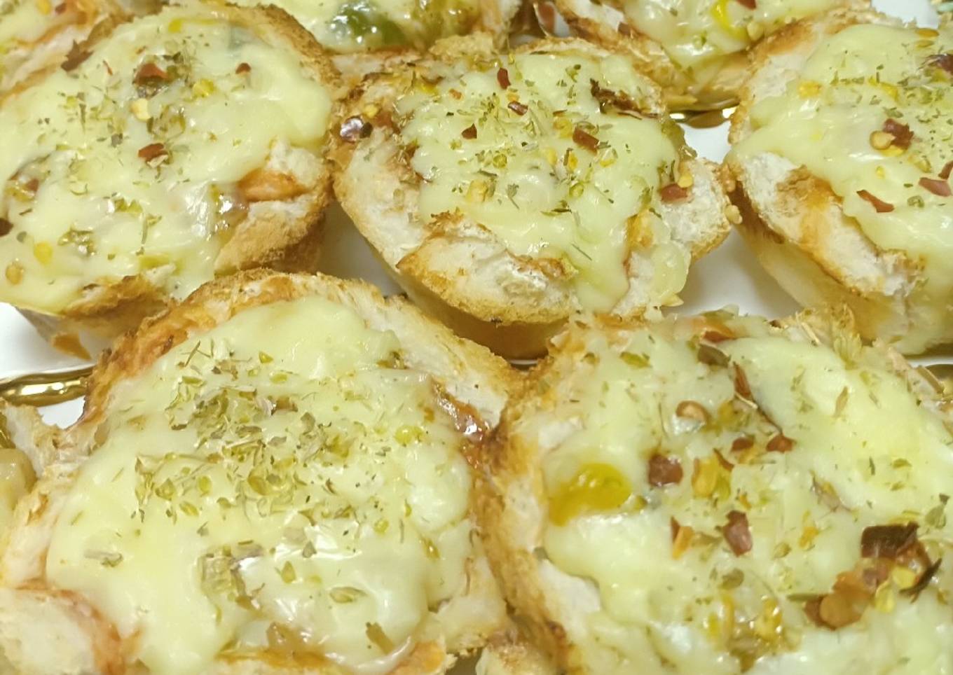 - Season it with mozerella cheese and oregano and chilli flakes.