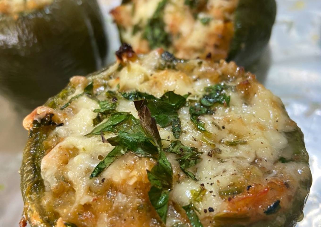 Bell Peppers Stuffed with Louisiana crawfish, Shrimp, and Crabmeat! What else can be better! #cajuntrinity