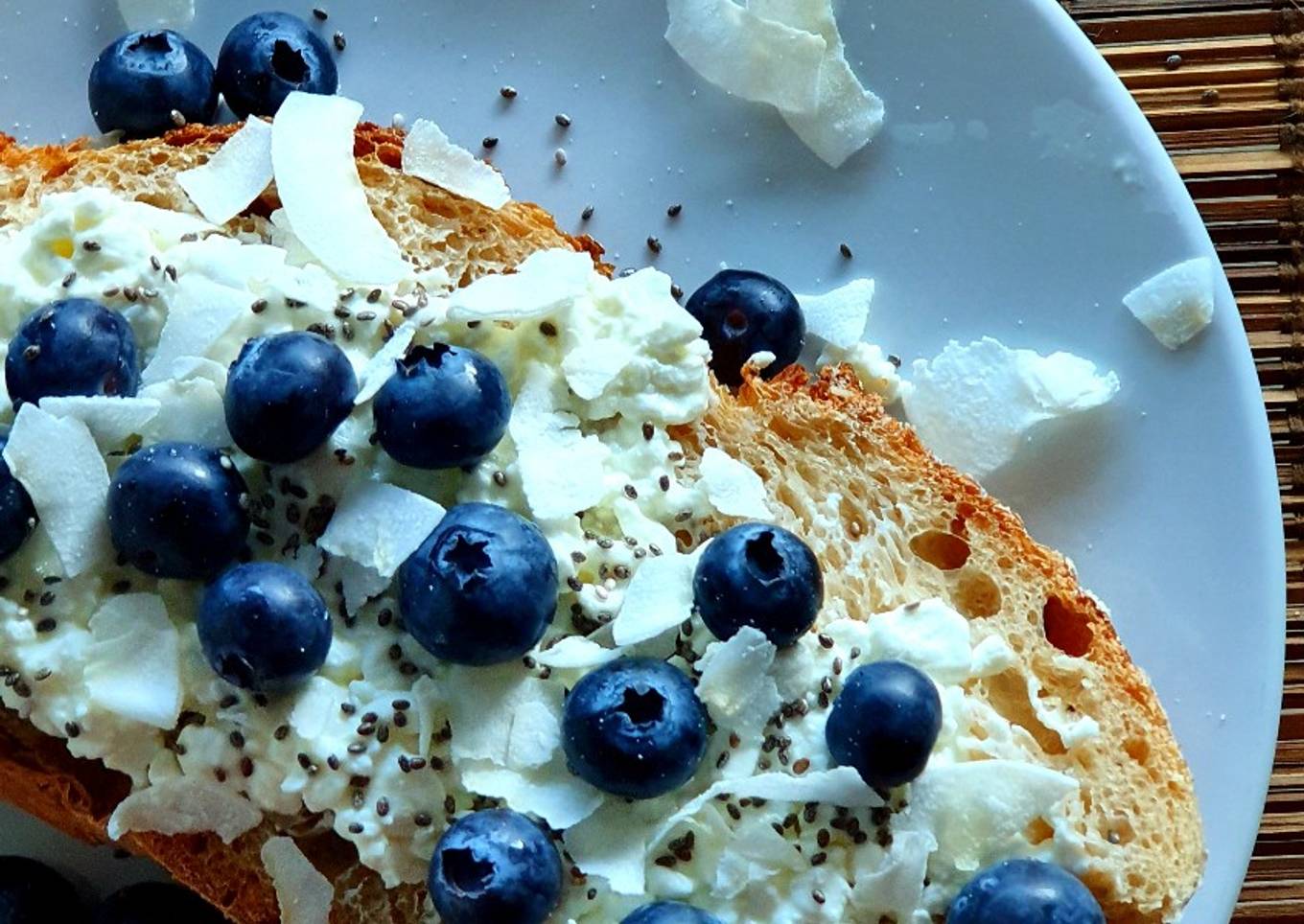 - Sprinkle coconut flakes and chia seeds.