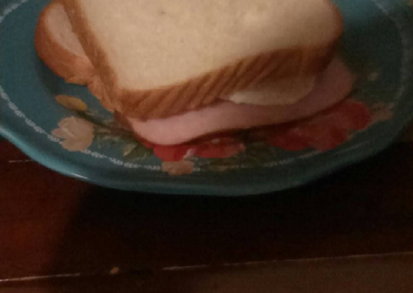 - Get 2 slices of bread and 1 slice of cheese and 1 slice of ham. Then put them together.